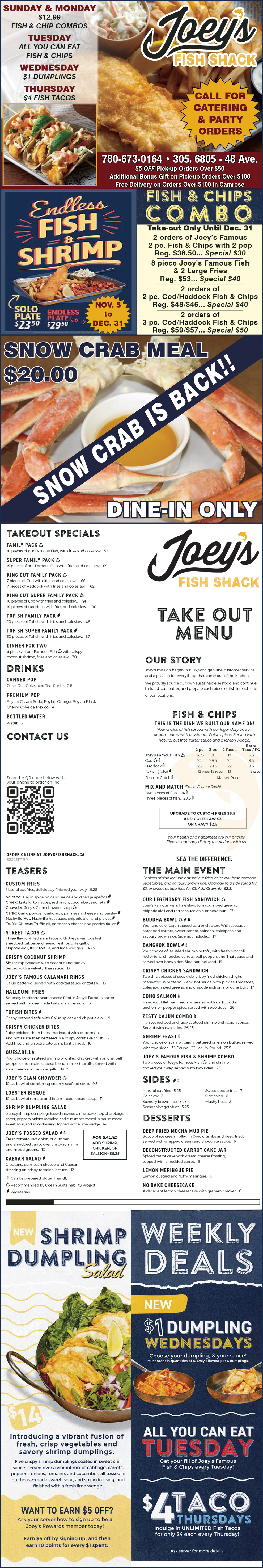 Joey's Fish Shack Camrose - Menu - Dine In - Pick Up or Delivery