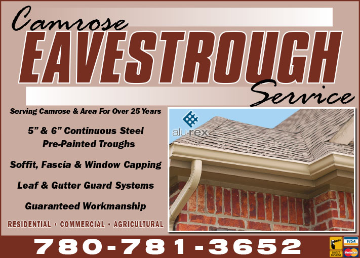 | Camrose Eavestrough Service Ltd Box 1626 Camrose, AB T4V 1X6 780-781-3652 |